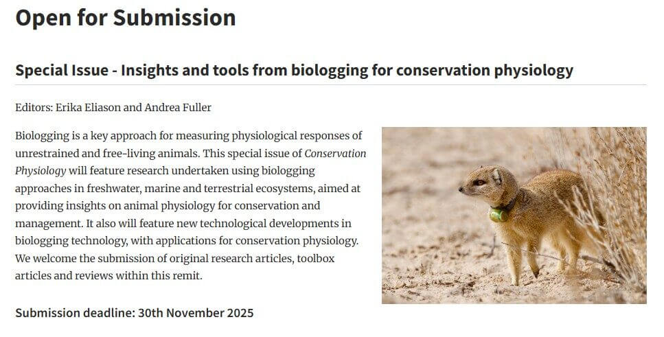 Conservation Physiology special issue: “Insights and tools from biologging for conservation physiology”. Submission deadline: 30th November 2025